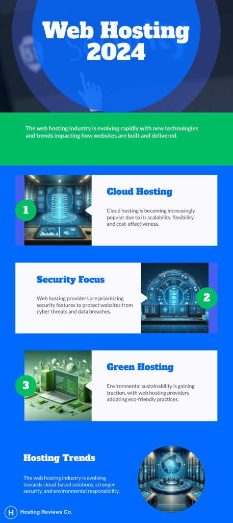 As we look ahead to 2024, the web hosting industry continues to evolve rapidly. Cloud hosting remains at the forefront, with more businesses opting for the flexibility and scalability it offers. Security features are becoming more robust, protecting websites from increasingly sophisticated cyber threats. And with environmental concerns on the rise, more hosting providers are embracing green practices, ensuring a more sustainable digital future.